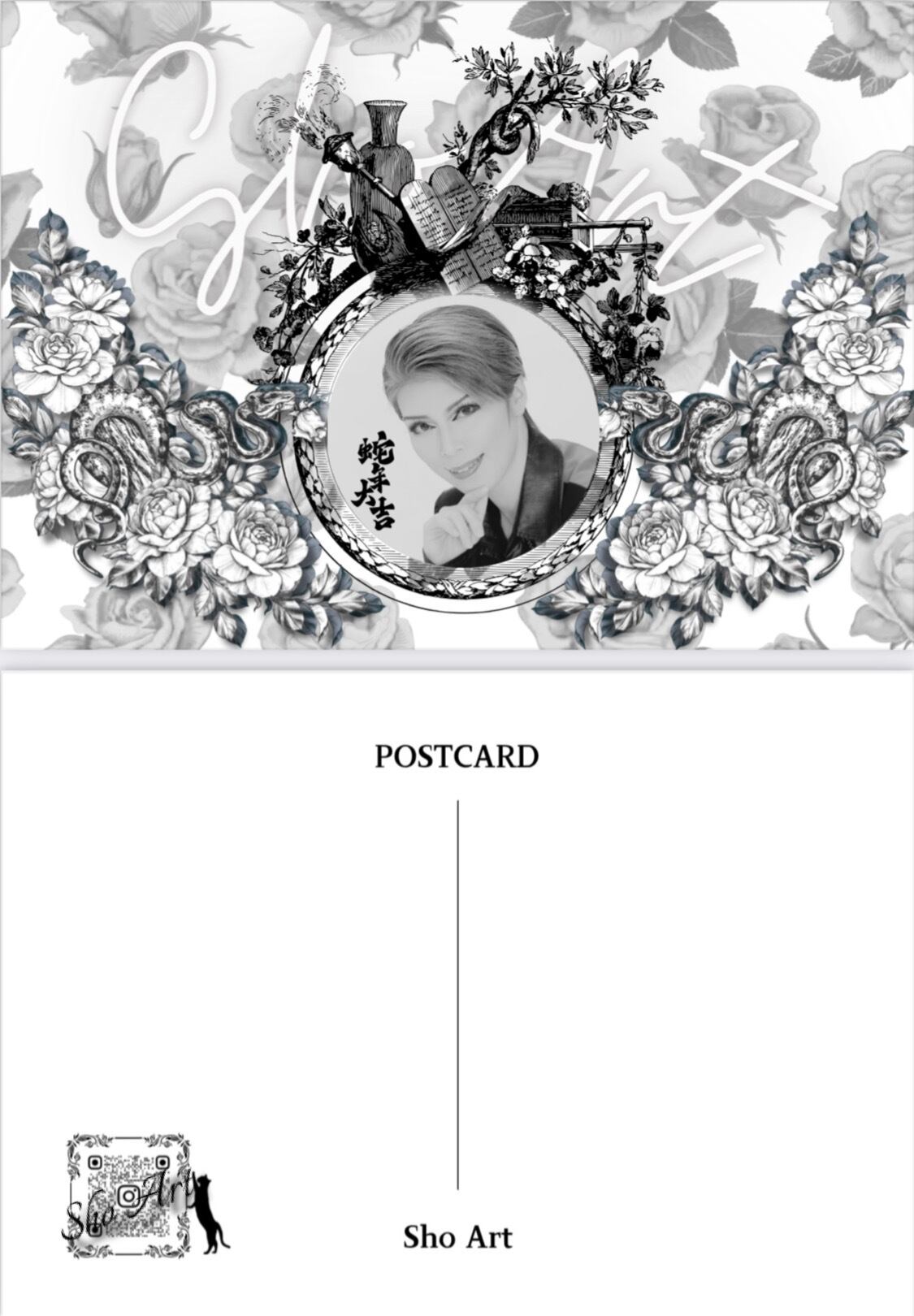 泉美匠の写真を大胆に取り入れ、豪華に彩る薔薇や“乙”の草木がしなやかに伸びる(広がっていく)様子、“巳”のデザインが調和した伝統と現代アートの融合をイメージした特別な一枚に仕上げています。