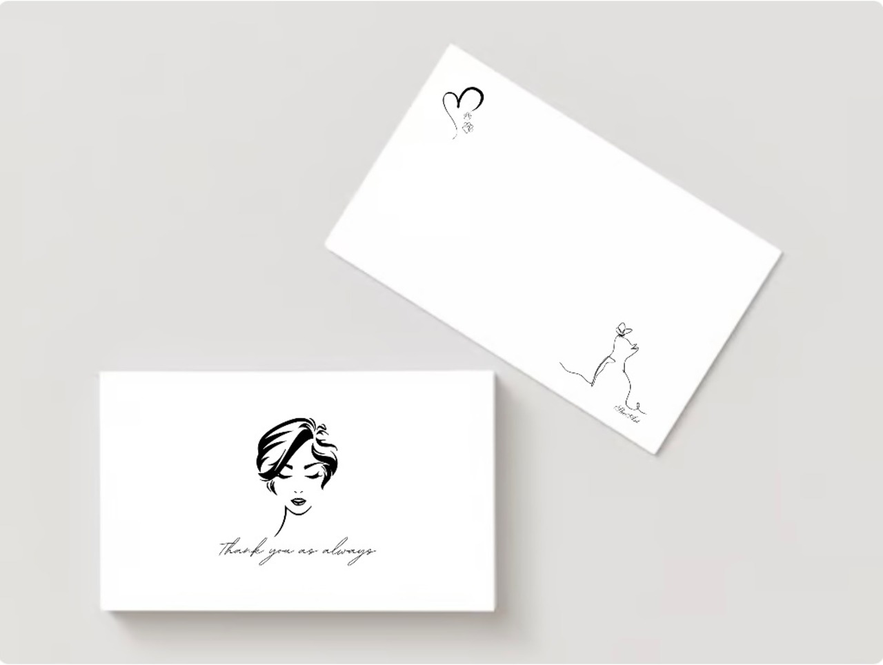 表面にはエレガントな女性のイラストと「Thank you as always」のメッセージを添え、感謝の気持ちをスタイリッシュに表現しました。